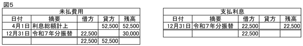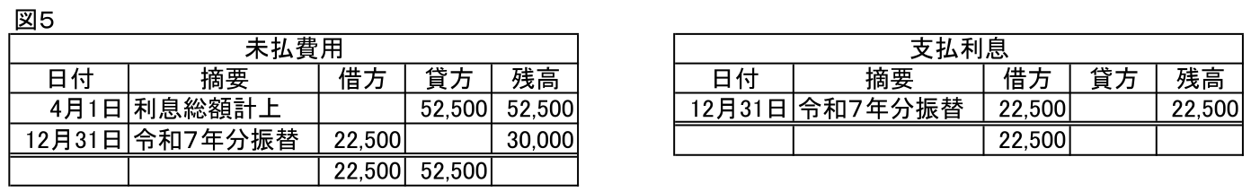 支払利息22,500/未払費用22,500  令和7年分の利息総額を計上 ※1,000,000円×3%×9/12=22,500円