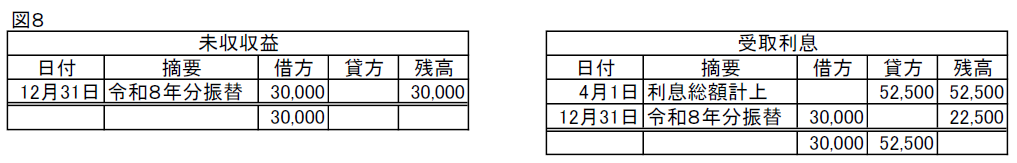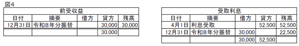 受取利息30,000/前受収益30,000   令和8年1月以後の利息総額を前受収益に振替 ※1,000,000円×3%=30,000円