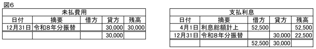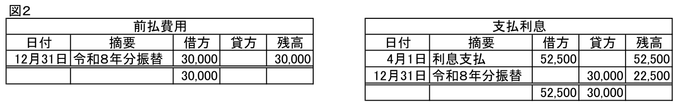 前払費用30,000/支払利息30,000  令和8年1月以後の利息総額を前払費用に振替 ※1,000,000円×3%=30,000円