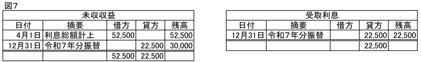 未収収益22,500/受取利息22,500  令和7年分の利息総額を計上 ※1,000,000円×3%×9/12=22,500円