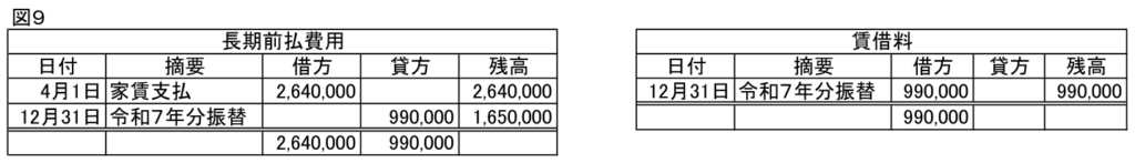 支払家賃 990,000/長期前払費用 990,000 ※110,000円×9月